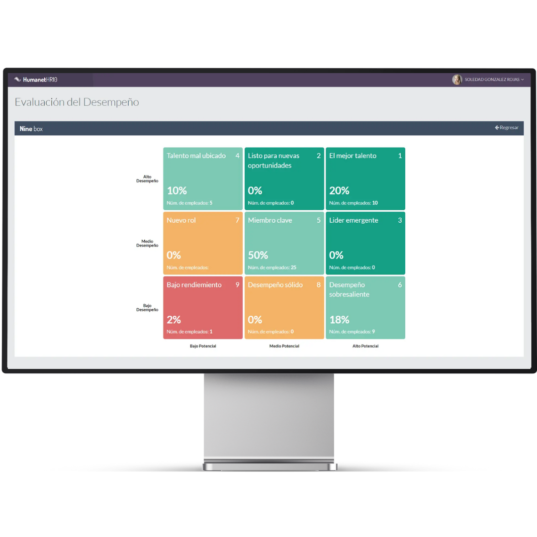 Con la solución Evaluación de Desempeño de HumanetHR, podrás evaluar y gestionar el talento dentro de tu organización. La característica de matriz Nine Box permite visualizar el rendimiento y potencial de los empleados en una matriz 3x3, facilitando la identificación de talentos clave, desarrollo de planes de sucesión y creación de programas de desarrollo personalizados.